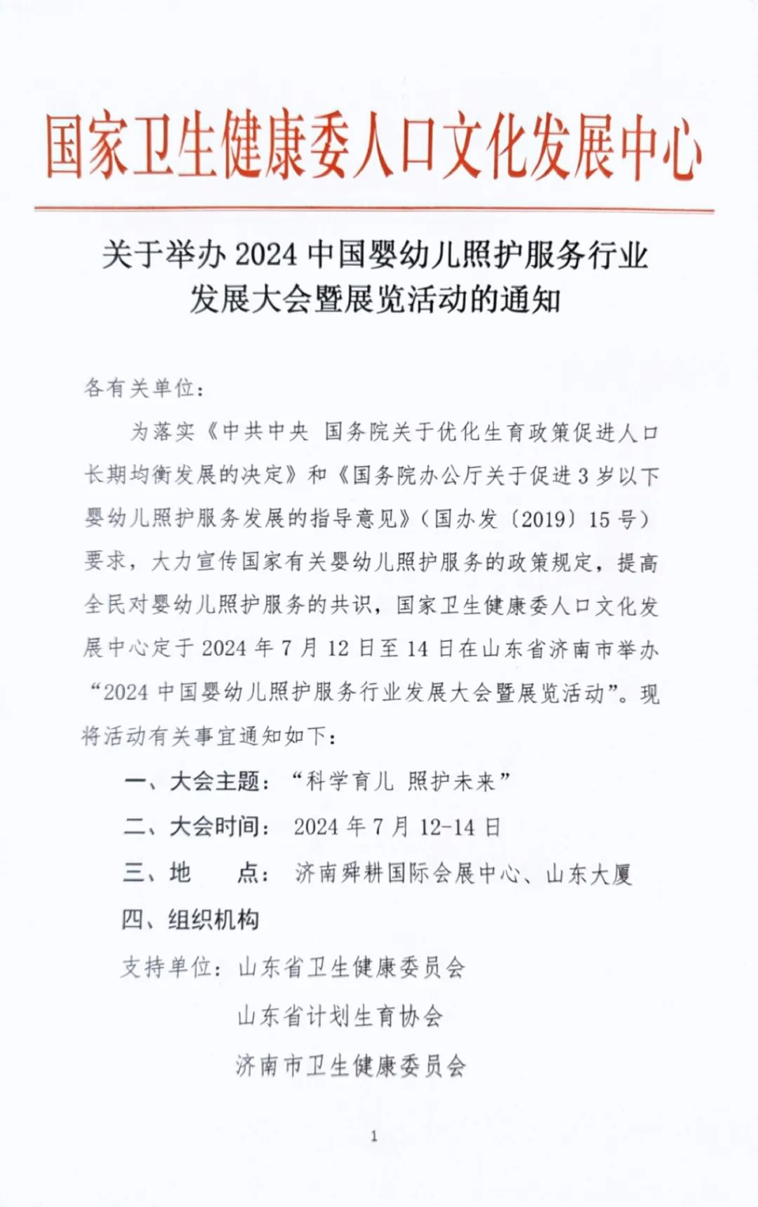 关于举办2024中国婴幼儿照护服务行业发展大会暨展览活动的通知